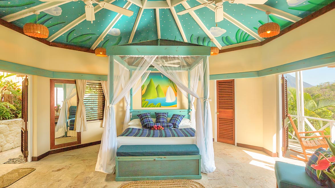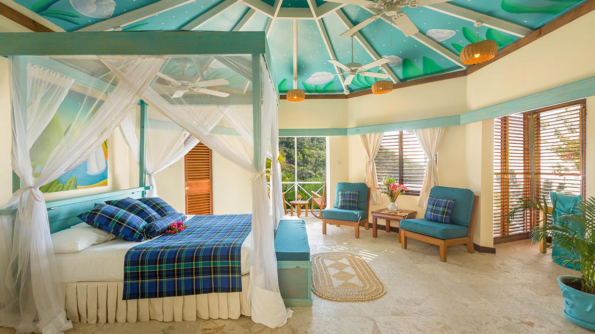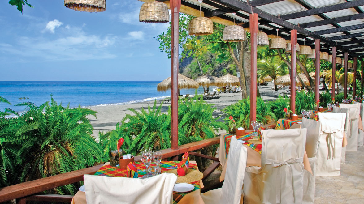 The 49 individually-designed rooms and suites feature original works of art by local and international artists. Each has a ceiling fan, shower, tea/coffee making facilities, complimentary WiFi and a private verandah. Superior Hillside Rooms have panoramic views whilst Deluxe Rooms are a little larger and are located either in the gardens close to the beach or on the hillside with ocean views. The spectacular and particularly spacious Premium Hillside Rooms are highly recommended, boasting incredible views of the Pitons and ocean. Beachside Deluxe Rooms are air conditioned, whilst those on the hillside are cooled by the sea breeze. Some Deluxe and Premium Hillside Rooms feature a dramatic ‘open-walled’ design with the fourth wall open to the spectacular views. The Casuarina Piton Pool Suite features its own private pool, a spacious verandah and picturesque views; a second bedroom can also interconnect to make a fabulous two-bedroom suite. The new Beach House is a spacious one-bedroom suite with a generous terrace giving direct access to Anse Chastanet Beach.