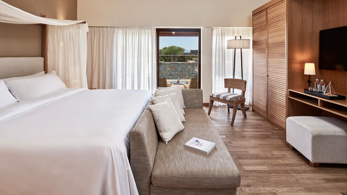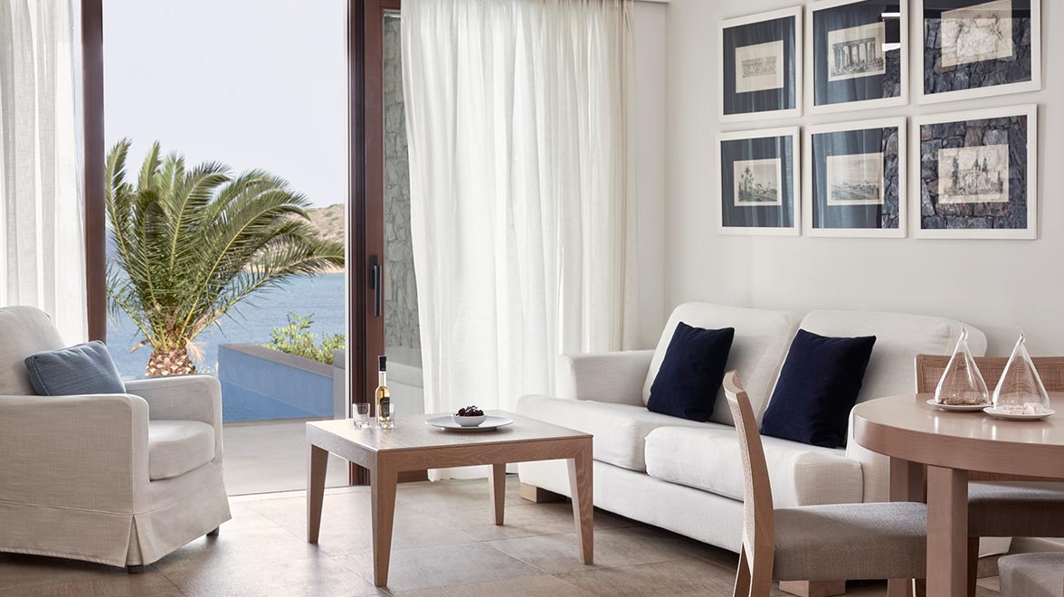 Each of the resort’s 251 air-conditioned rooms and suites, including four private villas, match the beauty of its surroundings, with tastefully-designed décor and a range of luxurious amenities including flat screen TVs and mini bars. Many of the rooms boast patios or balconies with ocean views and there’s an array of accommodation options that include a private pool. The Island Luxury Suites are ideal for couples seeking exclusivity and seclusion; they feature impressive views of the island of Spinalonga, a private heated pool, Jacuzzi bath and a list of exclusive benefits including access to a dedicated section on the beach and a separate breakfast area. The Royal Blue Villa is the largest accommodation, with three en suite bedrooms and space for up to eight people; it’s situated at the edge of the resort, guaranteeing increased privacy. The villa includes a private verandah leading out to the gardens, a private heated pool, living/dining room and outdoor dining and barbecue area.