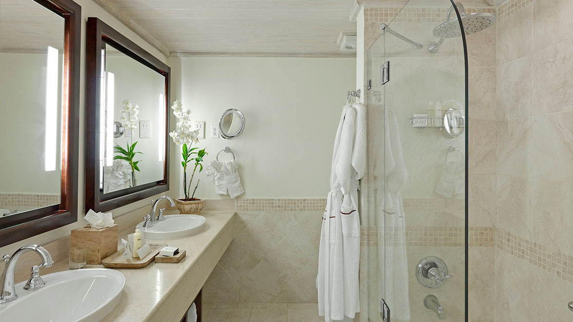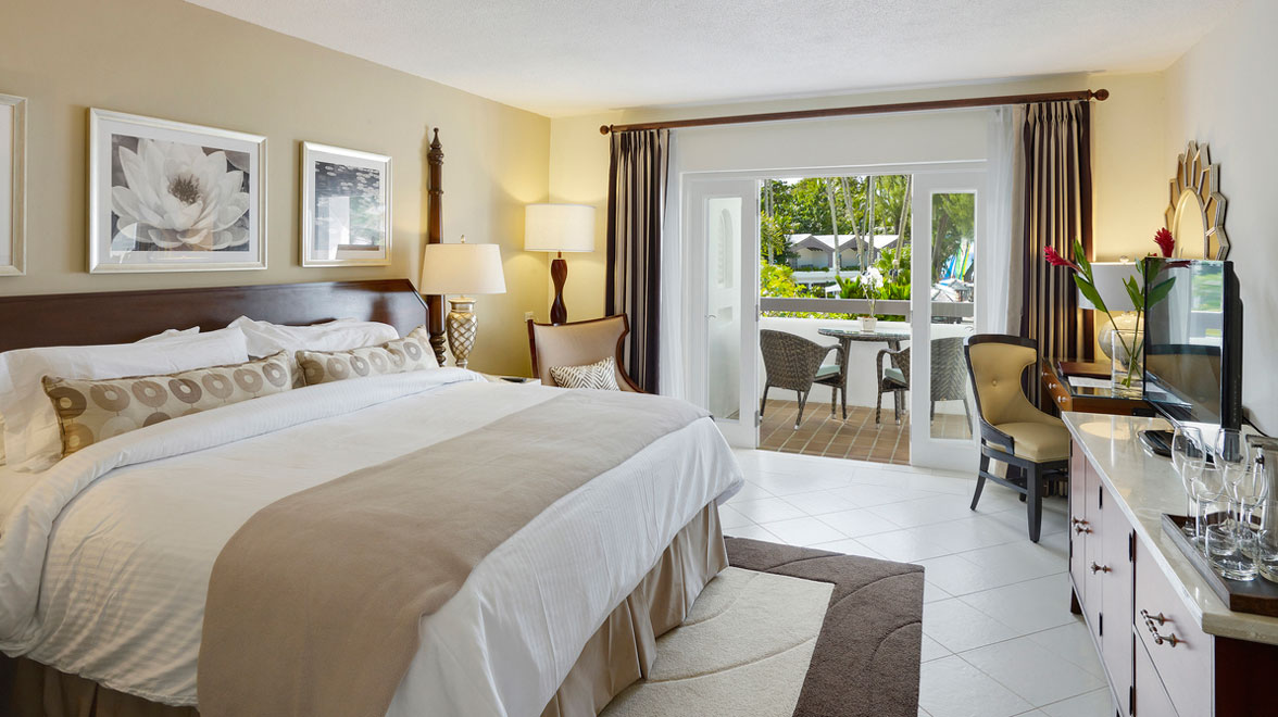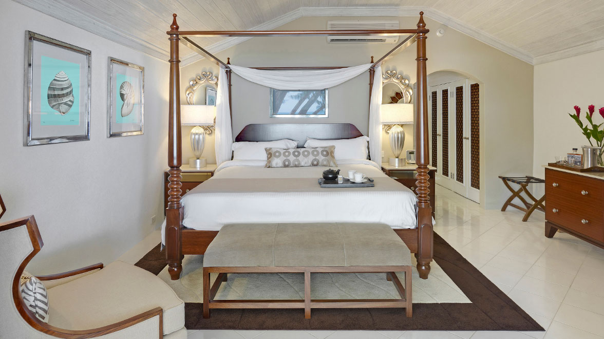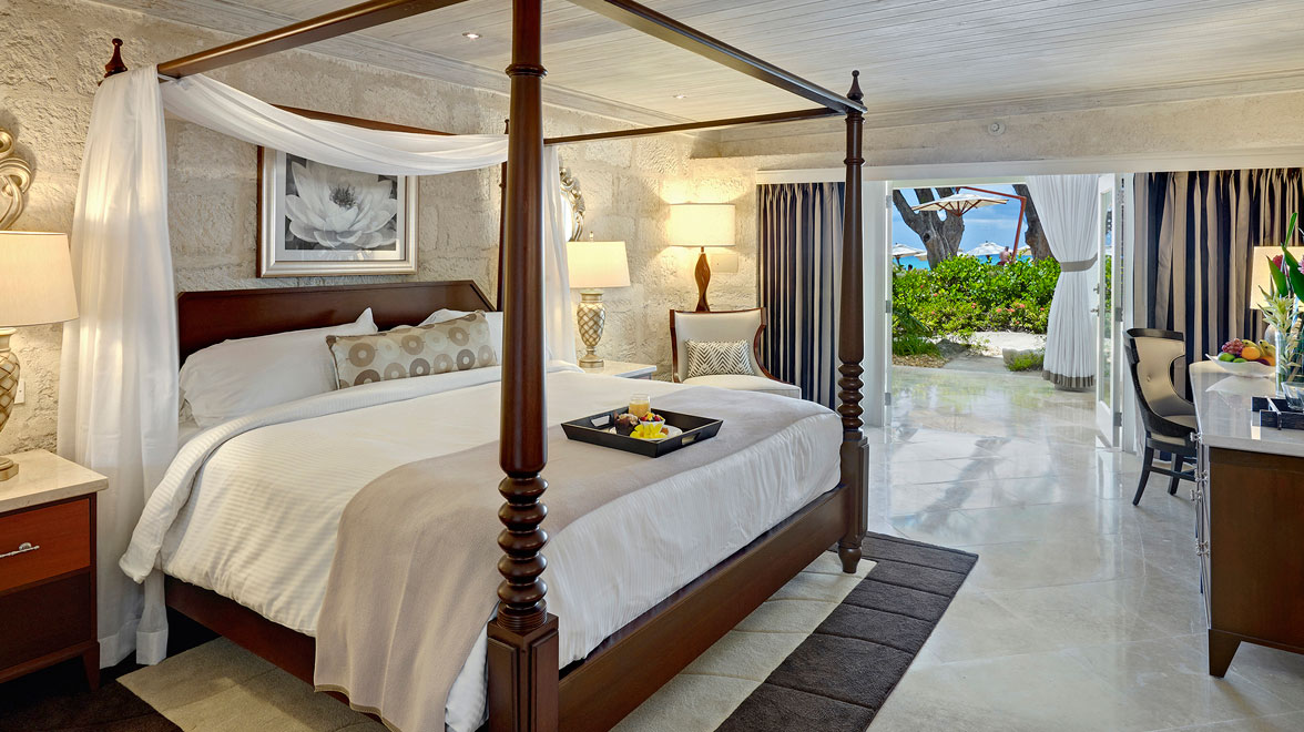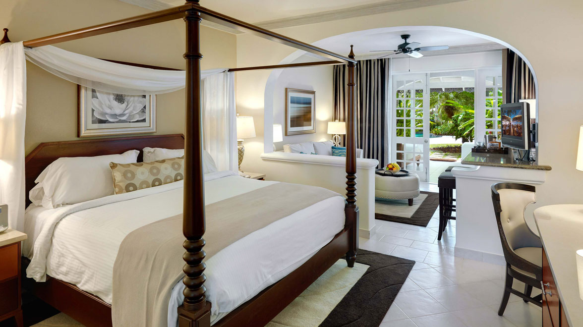 All 96 air-conditioned rooms and suites come with spacious marble bathrooms, attractive soft furnishings, a flat screen TV, unstocked mini fridge, iPod docking station, tea/coffee making facilities and a patio or balcony. Pool/Garden View Rooms are set back in the gardens; Luxury Poolside Rooms overlook the lagoon pool whilst the popular Luxury Swim-Up Poolside Rooms give direct access to it from the balcony or terrace. Ocean View Rooms offer views across the resort to the Caribbean Sea, whilst Luxury Ocean View Rooms are just steps from the beach and are mostly located on the first floor with ocean views. The more spacious Pool/Garden View Junior Suites feature a sunken bath and a sitting area with sofa bed which is ideal for children. The One Bedroom Ocean View Suites are furnished with a four poster bed and feature a separate lounge.