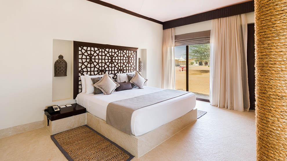 All 88 rooms and villas have air conditioning, en-suite bathroom, and an outdoor seating area. All accommodations, exept Deluxe Rooms, is tented, with your bedroom enclosed by a Bedouin-style canopy. Higher categories have additional amenities such us WiFi and a coffee machine. The Two Bedroom Villas have a living room and sleep up to four people and Pool Villas each have private pool with outdoor cabana.