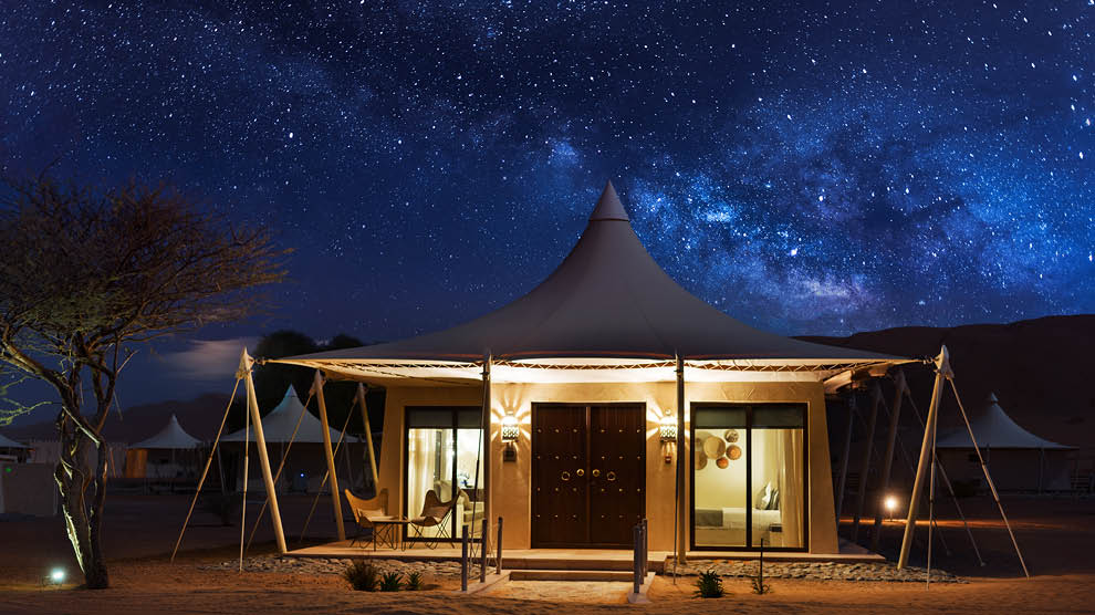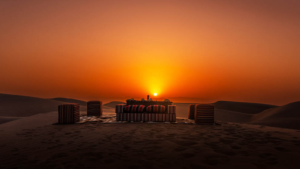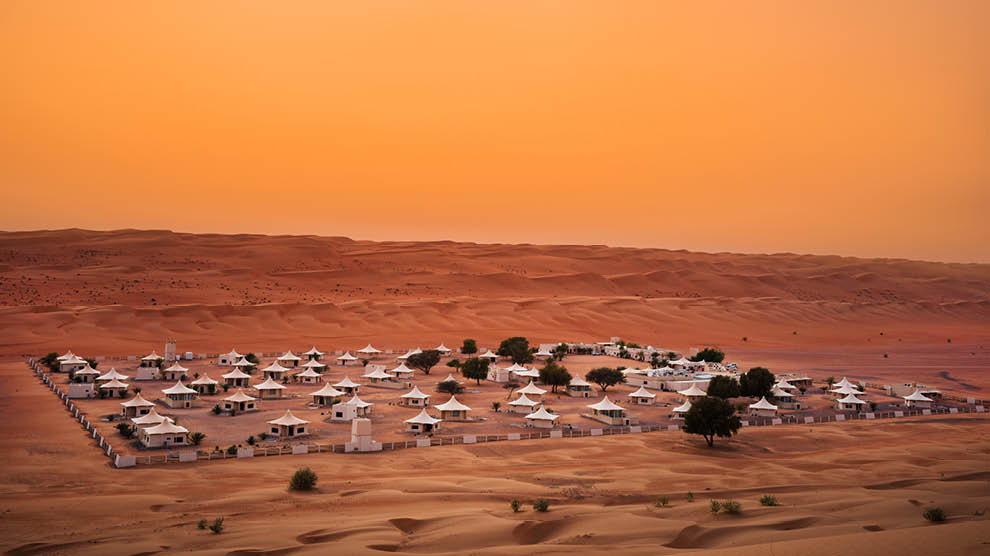 This is a luxurious tented retreat set amongst the undulating dunes of the beautiful Wahiba Sands. Enjoy a romantic sunset camel ride and dine Bedouin-style under the stars, all without compromising on your creature comfort.