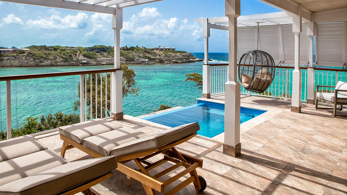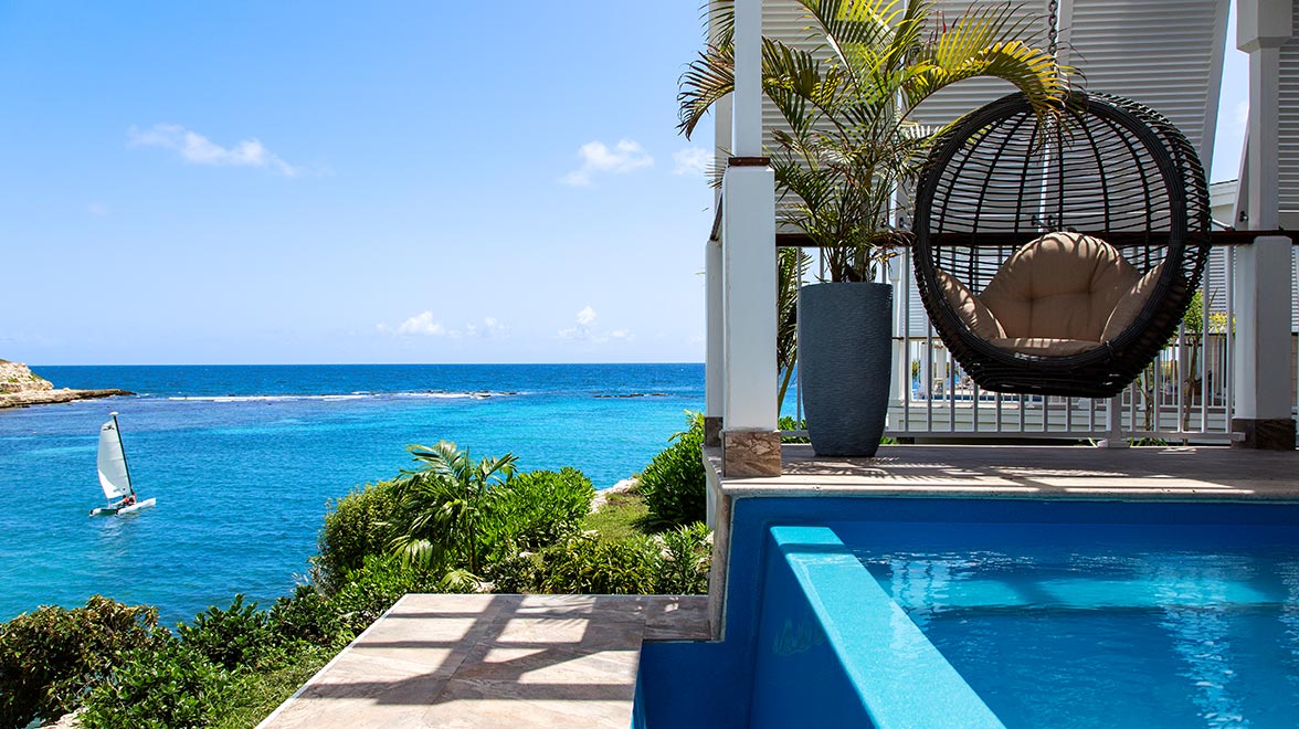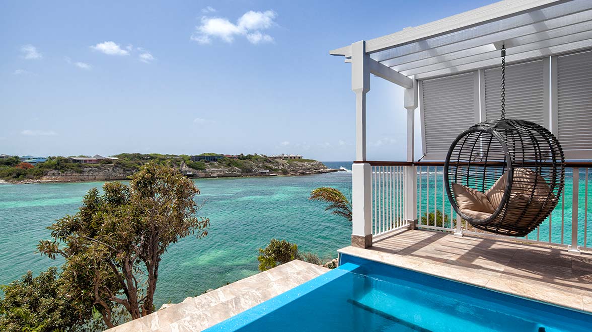 All of the villas have a spacious veranda and private infinity-edge plunge pool with sea views. The decor is Caribbean-inspired contemporary, with eye-catching touches like a hanging papasan chair, your own personal cocktail counter with fully-stocked wine cooler, and a huge spa-style shower. Villas are equipped with air conditioning, smart TV, WiFi, tea/coffee making facilities and in-room safe.