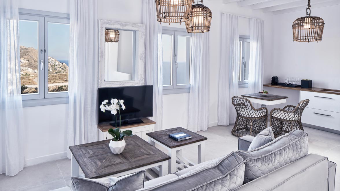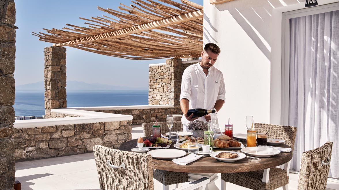 Choose between a stunning selection of one-, two- and-three bedroom villas, built in a classic Cycladic sugarcube style and draped with bright blooms of bougainvillea. The décor is a minimal, modern take on the Mediterranean look, and all villas open onto a fully-furnished terrace with a private outdoor pool. In-villa amenities include air conditioning, flat-screen satellite TV, bathroom with walk-in shower and Bvlgari amenities, WiFi, Bose SoundLink Bluetooth speaker, mini bar and Nespresso machine. You’ll also benefit from the services of a villa manager, with butler service available on request, and you’ll be welcomed to the resort with a bottle of wine and a selection of fruit in your villa on arrival.