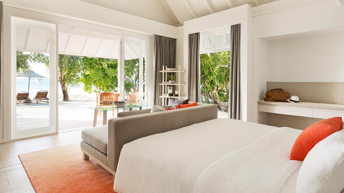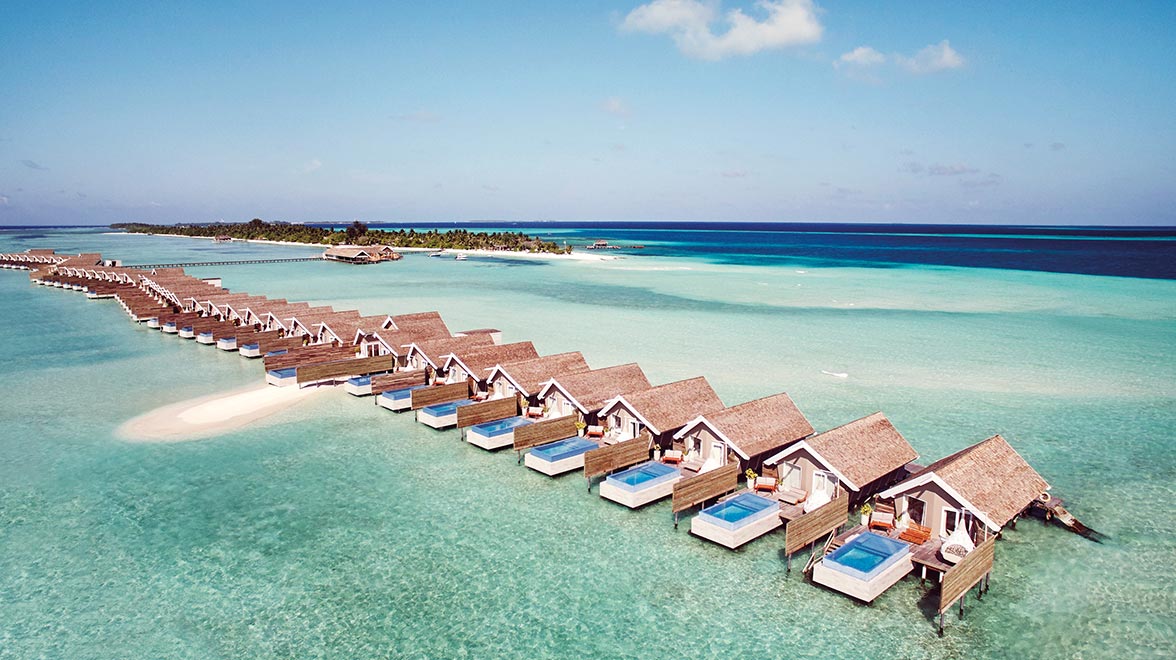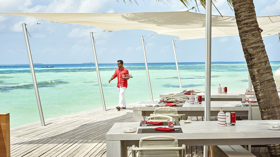 Contemporary interiors, beautifully finished with bright accents of colour, feature all-modern amenities including a TV, complimentary WiFi and mini bar. A choice of 193 pavilions and villas means that whether you want to be on the beach, over the water, waking with the sunrise, or watching the sunset from the comfort of your furnished terrace, there is an option for you. Beach Pavilions offer a beautiful marble bathroom with outdoor shower and can interconnect, so are great for families, or Family Lagoon Pavilions sleep up to four adults and two children under 18 yrs in two bedrooms, each with an en-suite bathroom. Beach Villas boast a marble sunken bath and enlarged terrace and we recommend upgrading for a private plunge pool. Water Villas and Romantic Pool Water Villas are perfect for couples, with uninterrupted ocean views and direct access to the lagoon, while Temptation Pool Water Villas are larger and feature a separate living room with glass floor and 14 metre long private pool.