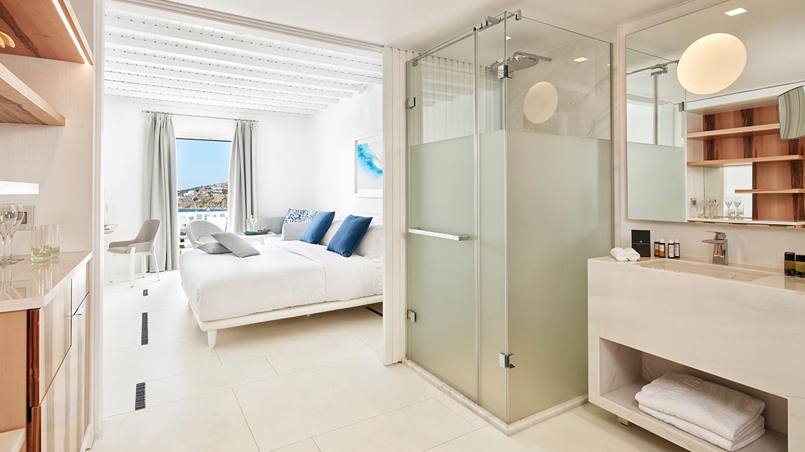 70 rooms and suites decorated in dazzling white, with bright pops of colour and opulent furnishings in marble and wood. All rooms open onto a private balcony or terrace, and are equipped with a flat-screen TV, Bluetooth speaker, WiFi, Nespresso machine and mini bar. Many room categories also have the option of upgrading to a room with a private outdoor Jacuzzi or pool. The Horizon Retreat, situated at the highest point of the resort, has fantastic views to Scorpios beach club and beyond, while the Passion Suite was designed specifically for honeymooners and couples, with a large open-plan living room and a terrace with outdoor Jacuzzi. The stunning Villa can be configured with two, three, four or eight bedrooms, and sleeps up to 22 people.