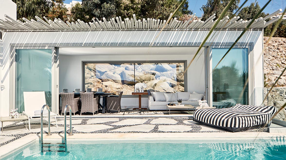 The Myconian Imperial has all the ingredients for a memorable stay on Mykonos, with luxurious private pool suites, proximity to the local nightlife and a great location just steps from one of the island’s finest beaches. The decor is fun and fresh, and dining here is a real treat, with options including one of the most popular sushi restaurants in Mykonos. It’s a great choice for a honeymoon or a romantic escape, whether you’re looking to party till dawn or simply relax by the pool.