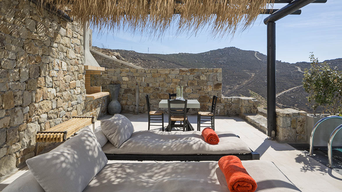 Poised on a hill overlooking the shimmering brilliance of the Aegean Sea, Myconian Utopia is a haven of contemporary elegance, offering a truly utopic atmosphere that particularly appeals to couples and honeymooners. It’s easy to take advantage of the stunning views down to Elia beach and the islands beyond as all guest rooms boast spectacular sea views.