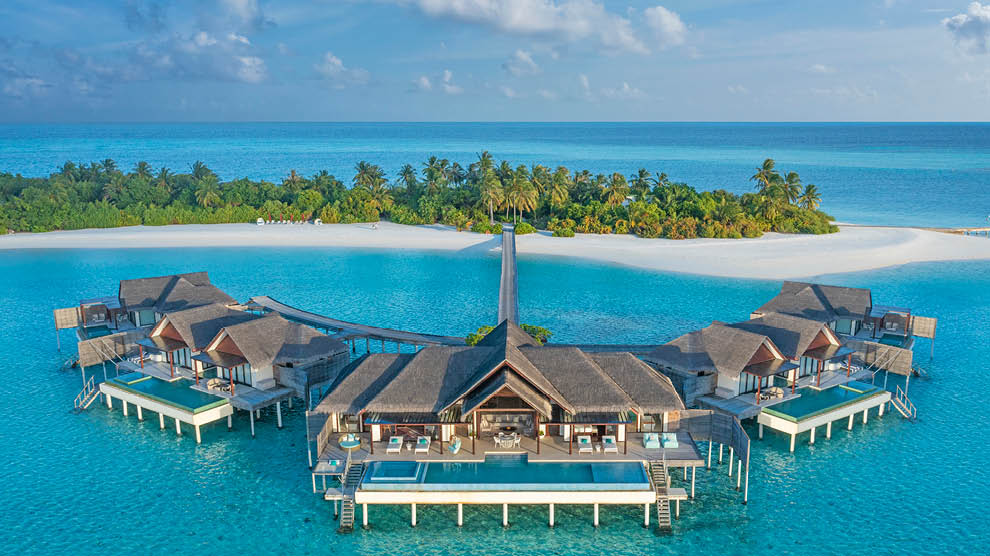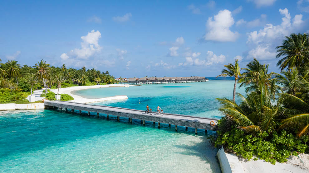 This chic and welcoming resort boasts 134 Villas, Suites and Pavilions set over two natural tropical islands. The latest technology, including plasma TV and Bose surround sound, plus a full size Deli-in fridge of drinks and snacks, with complimentary ice cream replenished daily, means everything has been thought of here. On CHILL, individual Beach Villas are surrounded by natural gardens to ensure privacy reigns, with a front terrace leading straight onto the soft white sands. At the back, beautiful partially open bathrooms feature a terrazo bath and indoor and outdoor rain showers. Water Villas have an ocean facing bed and stunning over-water infinity plunge pool and Deluxe Water Pool Villas have a pool with Jacuzzi. On PLAY, the Beach Villas with Pool are perfect for families, with a separate living room that can sleep up to two children under 12 yrs. We also like the One and Two Bedroom Beach Pavilions, with central living room and sunken seating area for floor to ceiling ocean views, a master bedroom and twin bedroom each with their own adjoining bathroom, an expansive private pool and small kitchen. All types of accommodation also have a Thakuru (On-Call Shared Personal Assistance).