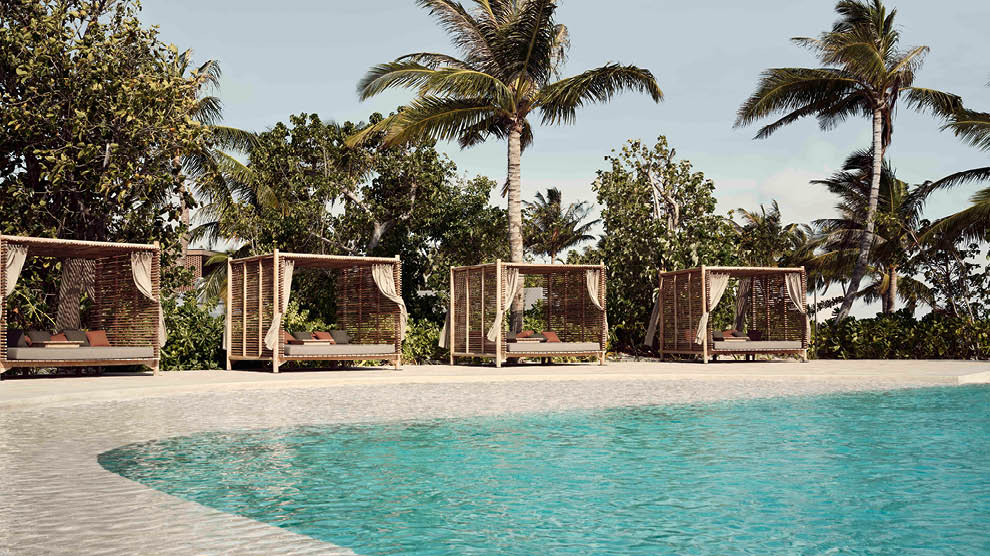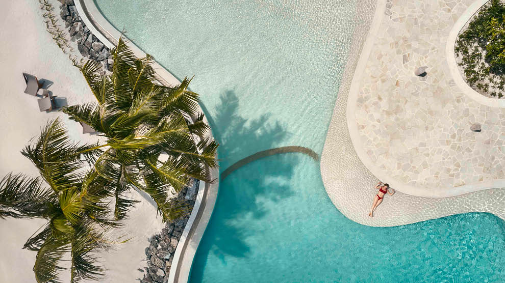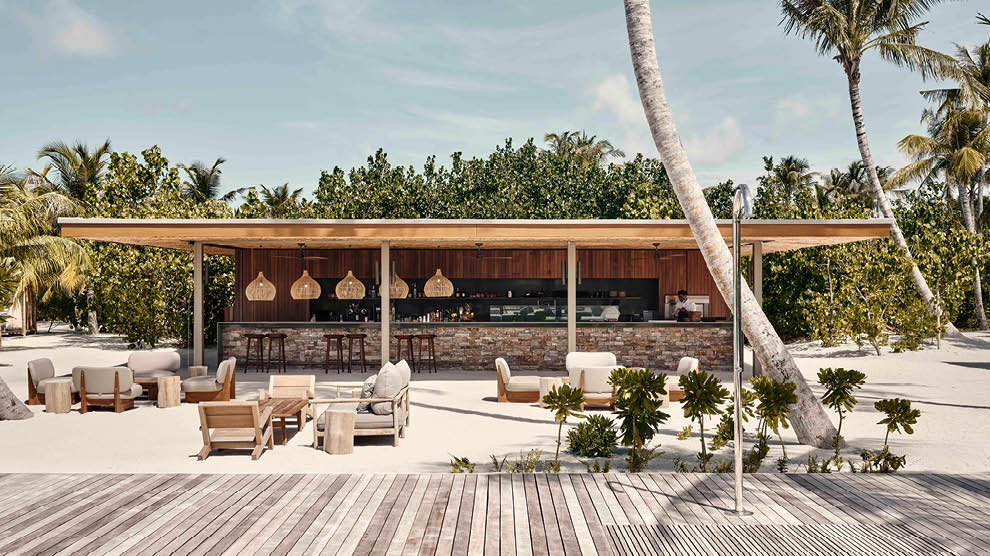 Patina Maldives is set on the largest of the Fari Islands, an innovative concept where three different resorts enjoy access to shared facilities, with guests able to travel between islands by traditional dhoni boat. Patina opened in 2021 to rave reviews; with a striking modernist design that stands out from other Maldivian resorts.