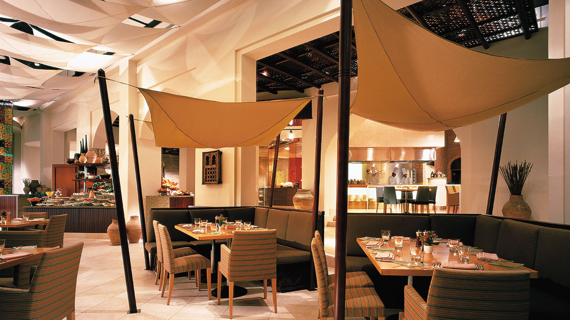 198 rooms and suites are sea facing, each with a generous bedroom opening onto a private terrace or balcony. Deluxe Terrace Rooms are recommended for direct access to the pools and gardens, while Deluxe Sea Facing Rooms offer views of the beautiful Sea of Oman. Premier Rooms are a spacious 51 sq metres, and One Bedroom Suites and Specialty Suites additionally include a separate lounge/dining area. All also feature complimentary WiFi, a 42” flat screen TV, DVD player, tea/coffee making facilities, mini bar and a separate bath and shower.