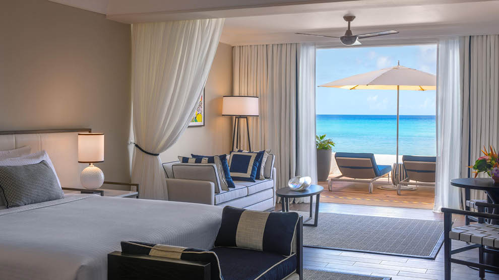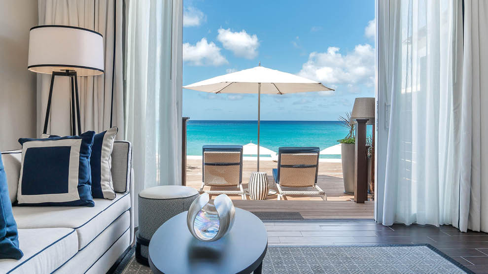 There are 72 rooms and suites, plus a spacious three-bedroom villa which is perfect for families. All rooms feature air conditioning, a mini bar, flat screen TV, CD/DVD player, marble-tiled bathroom with separate bath and shower, and large balcony or terrace. The Luxury Oceanfront Rooms are on the first floor of a three-storey building situated directly on the beach; Signature Oceanfront Rooms are on the top floor and offer spectacular unobstructed ocean views plus added amenities; and the larger Beach Front Suites are located on the ground floor and are further enhanced by a large private terrace and outdoor living area just steps from the ocean. The Three-Bedroom Villa is set back in the gardens and can be booked as a one-, two-, or three-bedroom accommodation - it features a spacious Ocean View Room on the upper floor and a comfortable two-bedroom suite with living/dining room on the ground floor. All accommodations receive VIP meet-and-greet service on arrival, and all accommodation except the Luxury Oceanfront Rooms receive butler service. Daily afternoon tea and return luxury transfers are included for guests staying in Beachfront Suites and the villa.