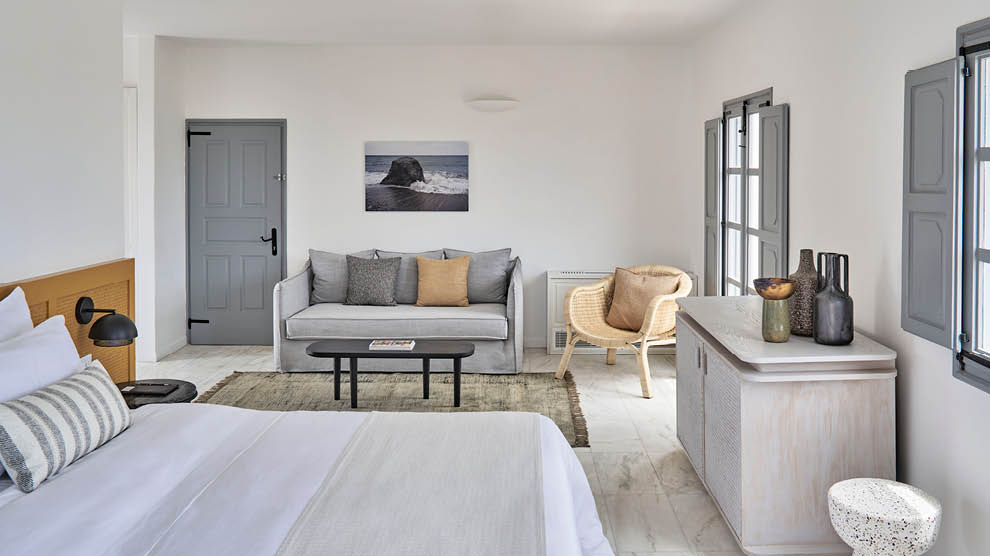 Hidden away in the heart of medieval Megalohori village, Vedema is a former 400-year-old winery that has been lovingly renovated and transformed into a charming boutique hotel. There are just 59 suites and villas, decorated in a bright and contemporary Cycladic style; some suites have an indulgent outdoor Jacuzzi, and each villa has a private outdoor pool. Dine poolside or in the atmospheric wine cave, enjoy pampering at the Elios Spa and take the short 10-minute trip down to the hotel’s private beach at Perivolos. The fantastic concierge can also arrange island excursions, private boat charters and even a helicopter flight from the hotel’s helipad.